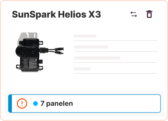 Werk met de merken die jij verkoopt. Onze database bevat specificaties van alle grote fabrikanten zoals SolarEdge, Enphase, Huawei, Growatt, Trina, SMA én vele andere merken. We gebruiken de specificaties van de fabrikant maar zijn totaal onafhankelijk in onze berekeningen.